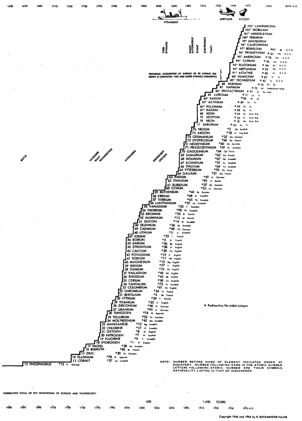 We begin with the observation that the periodic table represents Nature’s minimum inventory/maximum diversity toolkit. Everything in our physical world is built from the naturally occurring elements that were forged in the interior of stars. The catch is that they are distributed unevenly around the globe. The Dymaxion perspective helps reveal current and future resource demands resulting from technology implications of geopolitical and geoeconomic developments as well as the many synergetic benefits of global collaboration and cooperation.